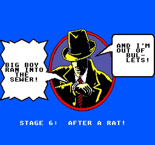 I never could really figure out the correct way to fight bosses. Dick Tracy doesn’t like to move left or right after he’s done shooting his machine gun, so I don’t get how you’re supposed to run and gun in order to dodge the boss’s attacks.