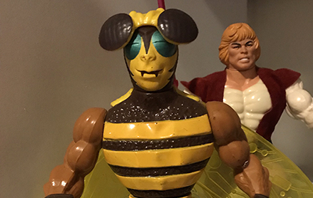 In 1984 Buzz-Off, the Heroic Spy in the Sky was introduced to the Masters of the Universe toy line. This humanoid bee was a hit with kids and a powerful ally for He-Man.