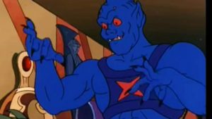 In the early day of Masters of the Universe, while the number of characters in the toy line was fairly limited the He-Man cartoon was first released for syndication. Making 65 episodes about only a handful of characters prompted the people at Filmation to create a lot of one-off characters. In the episode Eye of the Beholder He-Man meet some bug people who have six skinny limbs and are much more bug like than human, despite standing upright.. Right away one of the insect men points out how ugly He-Man is to them. “He has no shell, disgusting!” One of the insect men, Garth, points out it is wrong to judge He-Man by his looks because the insect men must look strange to He-Man. Later in the episode Garth sacrifices himself to help save Eternia’s environment and all it’s inhabitants, symbolically showing his courage and beautiful heart. Moments later Garth emerges from what seemed like a watery grave in a new evolved form that conforms much more to the human standard of beauty. His once six skinny bug legs are now a pair of muscular human arms and legs. His face which once consisted of round bug eyes and insect mandibles is now a rugged square jawed human face. His insect shell now looks more human shaped and Garth now sports butterfly wings. Garth finishes the episode looking more like a Masters of the Universe action figure than he started it.