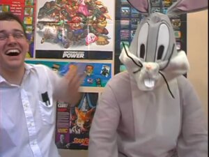It’s a toss up between the two, but my other favorite is Bugs Bunny. I probably had more fun filming the Birthday Blowout episode than any other episode. For the fight scene, I was holding the camera while James was throwing punches. He was saying different things like “Take this” or “how do you like that” and so on, as he pummeled on Bugs. I think I said “more like birthday beating” or something like to that effect, which James started laughing at. It was such an awful line, and we both knew it. But we got into a laughing fit over it so he said it anyway, and I can’t imagine that episode now without that line. I love awful jokes. When a joke or a line of dialogue is obviously really bad or unfunny, that’s when I decide to keep it!