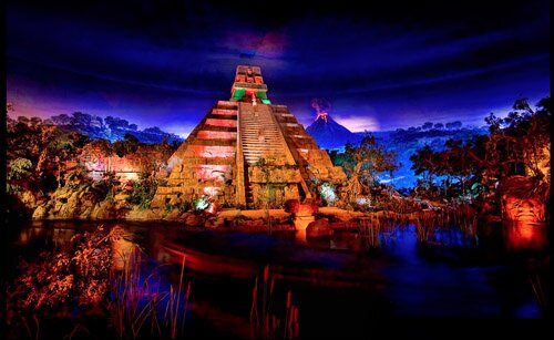 There was also a boat ride along the back river called The River of Time, which the restaurant overlooked. The original ride went along a lazy river that passed by a volcano. There were animatronics, and it was a nice, peaceful voyage.