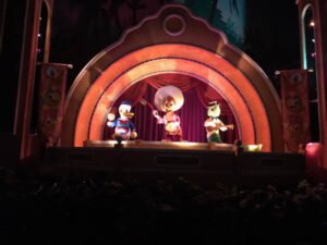 I always wanted a Donald themed ride somewhere in Disney, so I am certainly not upset about that. But the ride consists of large TV screens built into the walls with cartoons playing. This ride could have been excellent if they would have actually built some animatronic characters, but they once again went the cheap route. It’s really disappointing, because after waiting my whole life for a ride featuring my favorite Disney character, I was hoping for something much, much better.